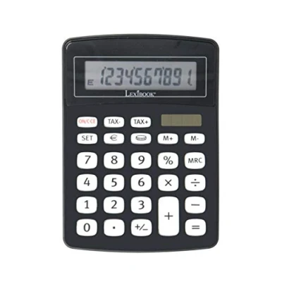Lexibook, 10 Digit Office Calculator with Euro Converter, Black, EL226