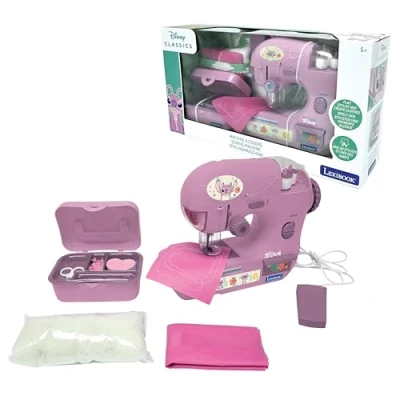 Lexibook, Disney Angel, Sewing Machine with Tape Measure, Thread, and Foot Pedal, Pretend Play Toy for Girls, Fashion Designer Playset, Purple/Pink, SW100D1