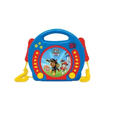 A Paw Patrol music player for children with countless features that allow you to listen to songs, sing and dance on their favourite music With 2 microphones to sing along with your favourite inters preten Front loading CD player with programming function and repeat button LED display headphone jack Extremely practical: a handle to take with you wherever you want Headphone jack and LED indicator