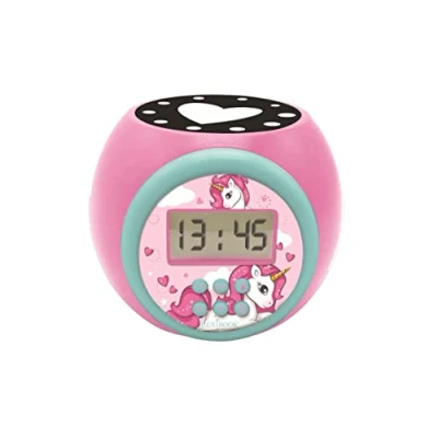 LEXIBOOK Projector Clock Unicorn with Snooze Alarm Function, Night Light Timer, LCD Screen, Battery Operated, Pink, RL977UNI