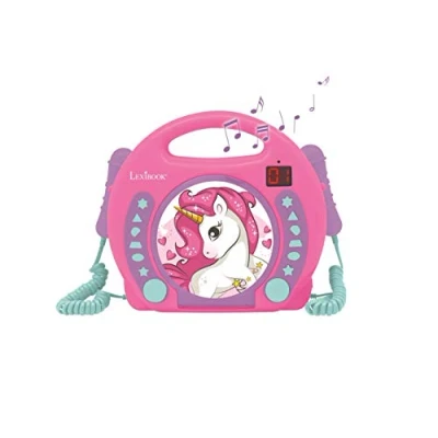 Lexibook, Unicorn, Portable CD player with Microphones, Music Player, Repeat and Programming, Karaoke, Headphones jack, Pink, RCDK100UNI