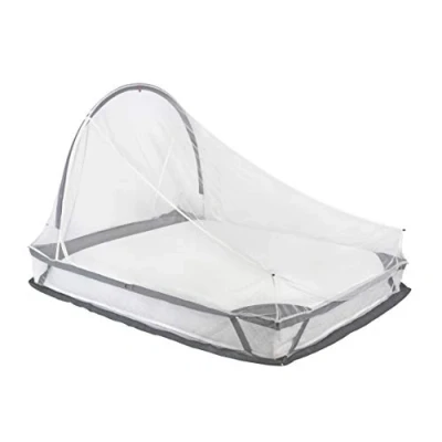 Double freestanding wedge shaped mosquito net with a lightweight aluminum pole that is self-contained and does not require hanging, is comfortable and allows good air circulation Net impregnated with EX8 mosquito treatment that kills mosquitoes that land on the mesh (lasts up to 2 years or 35 washes). Chemicals are 100% safe for children and babies Designed to fit any double bed and includes two zipped doors for easy access High strength ripstop nylon skirting board to prevent tearing or tearing of the net, with 4 tie-down points Dimensions when assembled: 1950 x 1400 x 1350 mm | Packed dimensions: 360 x 120 x 120 mm | Weight: 840 g