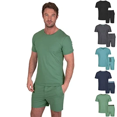 Light & Shade Men's Top and Short Bottoms Pyjama Set, Green, S