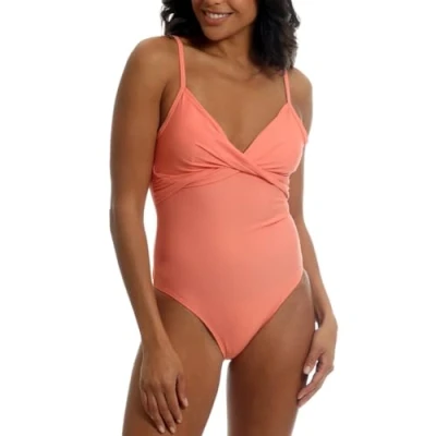 Light & Shade Women's Tummy Control Non Wired Removable Padding One Piece Swimsuit, Coral, 14