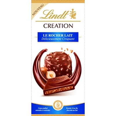 Made in France by Lindt & Sprungli SAS, FR-64400 OLORON SAINTE MARIE A sophisticated and unique recipe inspired by a timeless dessert. A crunchy praline with almonds and hazelnuts coated with fine milk chocolate. The Maîtres Chocolatiers Lindt perfects the art of chocolate with passion Quality ingredients and sustainably sourced cocoa beans With CREATION, immerse yourself in an infinite world of creativity and gluttony