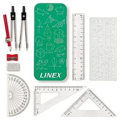 Linex Maths Set for Students, Geometry in a Tin, 10 Pieces, Compass, Protractor
