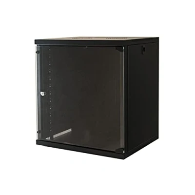 Hip side doors for opening, front door made of tempered glass, lockable, the door can be opened from 180°, and you can install in so that you can open from both sides 4 vertical side posts 19 adjustable in depth, load capacity 50 kg, ventilation slits at the top for the entrance cable from above or from below Mounting screws included for mounting the internal devices. Includes wall plugs for wall mounting. Holes on the roof for passive ventilation or installation kit of fans