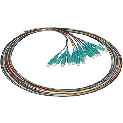 Fiber Optic Pigtail Cables, Set of 12 in Different Colours The cables have the connector only at one end LC Simplex OM3 connectors 50/125µ UPC Length 1 meter. Loose Buffer: the fiber coating (buffer) is designed to be removed by a few cm Colored fiber sets conforming to IEC 304 standard