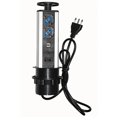 LINK LKMPT02 Retractable Table Socket with 2 Sockets 16A Female ITA/Schuko, 1 Rj45, Rj11, USB, Black
