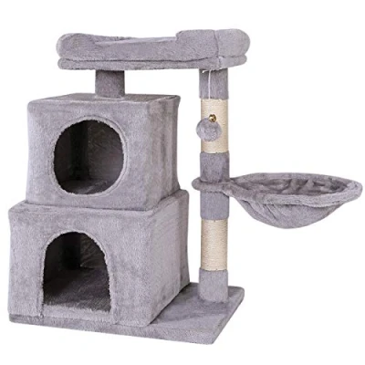 Comfort zone for your cat. This dibea cat scratching post made of soft plush and ideal activity possibilities creates the ideal environment for any velvet paw. The scratching tower guarantees species-appropriate play, rest and hiding. The variety counts Ideal play and peace paradise. The excellent features of this cat tree with 2 caves and a plush ball with bells satisfies your cat's play instinct. The cosy bed and the lounger also support the required rest phases and the popular observation is not neglected. The perfect balance between fun and retreats Optimal claw care with sisal. The durable sisal posts of the cat play tower allow the necessary claw care and ensure that your furniture is spared. Pure happiness for you and your four-legged friend Space-saving eye-catcher for your home. With a height of 70 cm, this cat toy fits perfectly into any room and ensures a pleasant sight with a feel-good guarantee for animals and humans. Assembly is easy with the enclosed assembly instructions (English language not guaranteed) Dimensions and colours: This high-quality cat accessory has the dimensions 50 x 35 x 70 cm, the caves 30 x 30 x 25 cm / 35 x 35 x 25 cm and the platform 40 x 30 cm. The durable cat toy is available in light grey and dark grey.