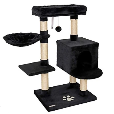 Comfort zone for your cat: this cat scratching post with soft plush and comprehensive activity options creates the ideal environment for any velvet paw. The scratching tower guarantees species-appropriate play, rest and hiding Ideal play and peace paradise: the excellent equipment of this cat tree with a cave and a movable plush ball satisfies your cat's play instinct. The cosy bed and lounger support the rest phases and popular observation is not too short Optimal claw care with sisal: the durable sisal posts of the climbing tree allow the necessary claw care and ensure that your furniture is spared Space-saving eye-catcher: with a height of 93 cm, this cat tree fits in any room and ensures a pleasant sight with a feel-good guarantee for animals and humans Dimensions and colours: this high-quality cat accessory has the dimensions 48 x 38 x 93 cm and is available here in black