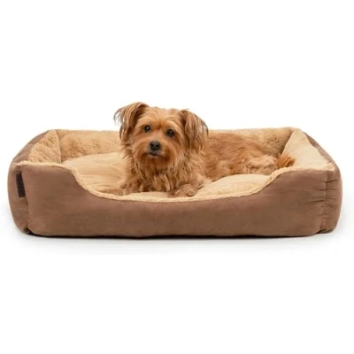 lionto dog bed with reversible pillow and non slip underside, robust pet cushion low entry for dogs cats of all ages, 75x60 cm, cuddly bed, brown/beige