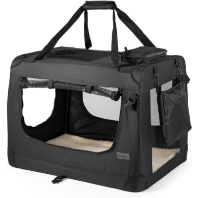 lionto dog transport box foldable for travel & car, 90x61x65 cm, sturdy with carrying handles blanket cats dogs up to 22 kg, fabric small large, black