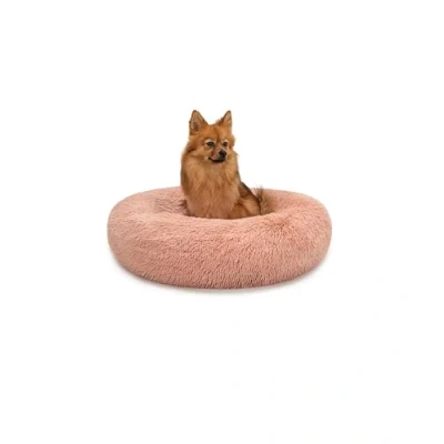 lionto Donut bed for dogs and cats, fluffy round dog small large pets, Ø 60 cm, soft cat made of cuddly plush, cushion with extra thick filling, pink