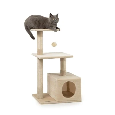 lionto Scratching Tree for Cats with cave and Plush Ball incl. Bell, Height 33,5 in, cat sisal & Plush, Cozy Lying Areas cave, Suitable Small Large Cats, Beige