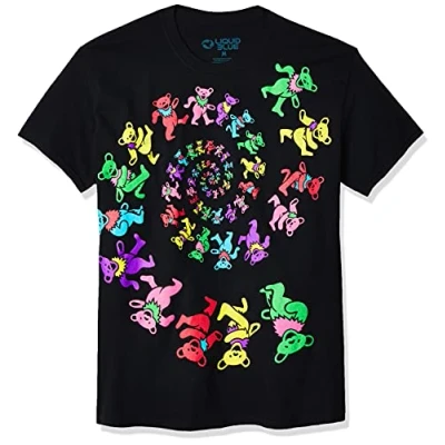 Liquid Blue Grateful Dead Spiral Bears Blacklight T Shirt, Black, XXL