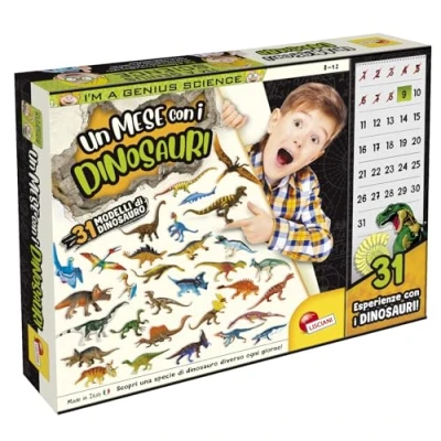 Discover a different kind of dinosaur every day 31 different dinosaur models ; Discover 1 dinosaur per day ; 31 surprise dinosaur experiences 31 dinosaur patterns, identikit cards Animal features; notions of archaeology; prehistory; observation; concentration; space-time, Manufacturer: Lisciani Giochi