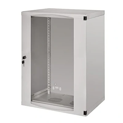 One-piece 19 inch wall housing - delivered unassembled in a flat pack Powder-coated 1.2 mm steel frame - glass door with cylinder lock 3 cut-outs for cable entry - depth adjustable profile rails made of 1.5 mm steel 30 kg max. Static load capacity - quick and easy to install Colour: RAL7035 light grey