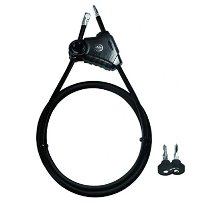Cable made of braided steel for strength and flexibility, 2 m length-adjustable cable for flexible uses Durable locking mechanism fixes the cable at any position Rustproof lock and vinyl-coated cable provide excellent weather and scratch resistance Can be used to secure a single fixed object or to lock 2 objects at once Cable size: diameter 10 mm, cable length: 2 m