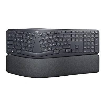 SPLIT, CURVED KEYFRAME – Type more naturally with an ergonomic keyframe that improves typing posture. The sloping keyboard reduces muscle strain on your wrists and forearms. PILLOWED WRIST REST – The curved wrist rest offers 54% more wrist support and reduces wrist bending by 25% compared to a standard keyboard without palm rest.* *Compared to a traditional Logitech keyboard without palm rest. PERFECT STROKE KEYS – Scooped keys match the shape of your fingertips. Type with confidence on a wireless keyboard crafted for comfort, precision and fluidity. You’ll feel – but not hear – every keystroke. ADJUSTABLE PALM LIFT – Seated or standing, keep your wrists in a comfortable, natural posture, with tilt legs of 0°, -4° and -7°. UNCOMPROMISED PERFORMANCE – An integrated number pad for heavy spreadsheet users, the ability to connect to up to three devices and a two-year battery life** ensure you don’t compromise performance for ergonomics. **Battery life may vary based on user and computing conditions. USER TESTED. ERGONOMIST APPROVED – ERGO K860 has been designed, developed and tested with criteria set out by leading ergonomists to improve posture and lower muscle strain. DESIGNED FOR COMFORT. BUILT TO LAST – Durable materials, a reinforced design and remarkable stability inspire confidence at the desk. Compatible devices: laptop