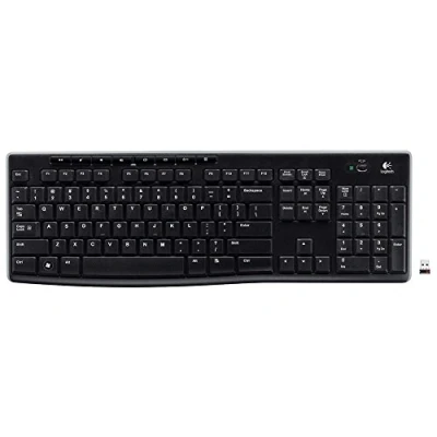 All-day Comfort: This cordless keyboard creates a comfortable and familiar typing experience thanks to the deep-profile keys and standard full-size layout with all F-keys, number pad and arrow keys Built to Last: The spill-proof (2) design and durable print characters keep you on track for years to come despite any on-the-job mishaps; it’s a reliable partner for your desk at home or at work Long-lasting Battery Life: A 24-month battery life (4) means you can go for 2 years without the hassle of changing batteries of your full-size wireless keyboard Easy to Set-up and Use: Simply plug the USB receiver into a USB port on your desktop, laptop or netbook computer and start using the keyboard right away without any software installation Simply Wireless: Forget about drop-outs and delays thanks to a strong, reliable wireless connection with up to 10 m range (5); K270 is compatible with Windows 7, 8, 10 or later Multimedia Keys: The things you do most are right at your fingertips with 8 keyboard hotkeys for instant access to the Internet, E-mail, play/pause, volume and more Favourite Wireless Keyboard: K270 brings together familiar typing, wireless freedom, and long battery life; no wonder this is the world's top-selling keyboard (1) Upgrade to Logitech K750 Wireless Solar Keyboard: For a full-size layout with extra shortcuts and increased productivity, choose K750 wireless solar keyboard