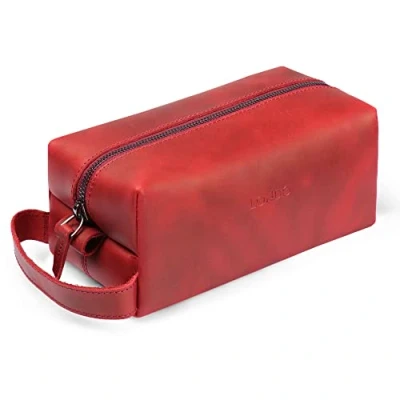 EXQUISITE LEATHER CRAFTSMANSHIP - The LONDO Genuine Leather Travel Bag is crafted with high quality, genuine cowhide leather attached with fine and durable stitching, giving it a sleek look and a slim body. An exemplary model of artisanal craft combining the pleasant feel and the handsome look of leather without sacrificing versatility and convenience. SIZE - The LONDO Genuine Leather Travel Bag measures 25 x 12 x 9.5 cm. PRACTICAL - The LONDO Genuine Leather Travel Bag is designed with convenience in mind. You can carry your items such as your phone, your wallets, your purse, small electronics, the bag also doubles as a toiletry bag for your cosmetics, jewelry and toiletries. Comes with a convenient sturdy carry handle. DURABLE - The LONDO Genuine Leather Travel Bag is made from durable materials and manufactured with durable and strong stitching and utilizes quality zippers to ensure that it has a long lasting life. STYLISH - The LONDO Genuine Leather Travel Bag comes in four different colors, cinnamon, camel, red, blue, khaki, and black. Choose a color that best fits your style.