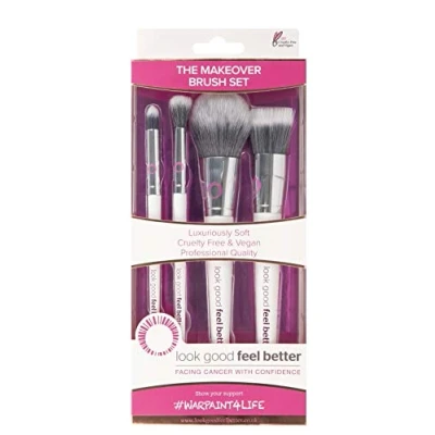 Look Good Feel Better is the only global cancer charity - supporting women with the visible side effects of cancer The Makeover Brush Set is the enhanced collection for whatever the occasion The set includes: Protective pouch, powder brush, finishing brush, tapered blending brush and detail brush Comes complete with a sleek travel case to protect your brushes when you are on the go Professional quality and cruelty free