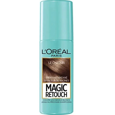 Instant spray to temporarily camouflage grey hair, works in just 3 seconds, ideal for colouring hair regrowth Results: Temporary root coverage until the next shampoo, homogeneous result without demarcation Application: Shake the bottle before use, spray 15 cm from the roots on dry hair, brush the hair and leave to dry for 1 minute, mixed product, as effective on women as on men Dries in just a few minutes, water resistant, available in multiple shades to match your hair Contents: 1x L'Oréal Paris Magic Retouch Instant Spray, White Hair Corrector, Tint: Brown, 75 ml