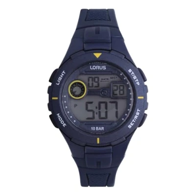 Lorus Men's Digital Quartz Watch with Silicone Strap, Black, Blue, Strap.