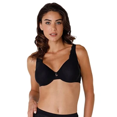 Underwired bra with moulded cups, shaping and invisible Minimizer effect: redistributes breast volume Microfiber with tulle covered cups Backs without elastic on the skin and wide lace straps for high wearing comfort Celebrity Minimizer: firm support and elegant and comfortable finishes