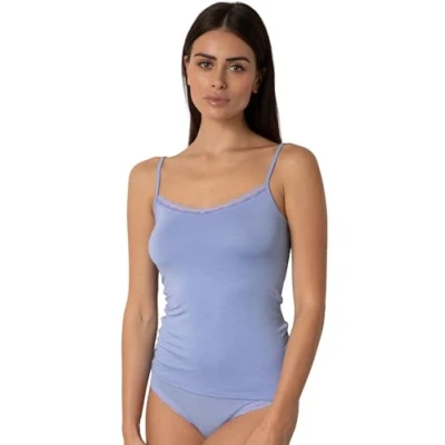 Women's top with thin spaghetti straps, lightweight and breathable for summer, to wear under light clothing or as a versatile underwear SOFT VISCOSE BREATHABLE ensures a feeling of comfort and freshness, ideal for underwear and summer wear SLIM SHOULDER STRAPS and slim fit for a feminine look that enhances the shape and fits naturally to the body ESSENTIAL AND MODERN LINES for a minimal and refined design, with delicate lace insert on the neckline that adds a feminine touch and easily adapts to different styles and looks Basic SOUL: versatile knitwear to wear as underwear or as an outdoor garment, suitable for different times of the day