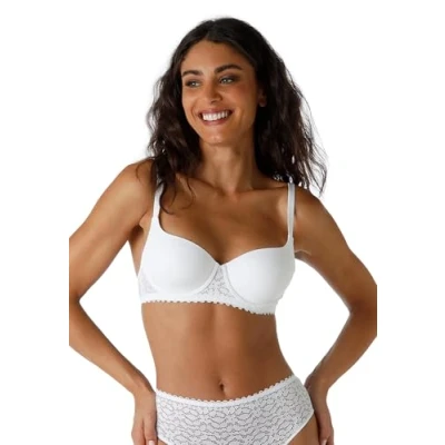 Underwired balcony bra with pre-shaped and padded cups to give maximum support and enhance the neckline at the best The cups are covered with soft microfiber to look smooth and discreet under all clothes Underbust and back made of elastic floral lace to add a touch of femininity to this women's underwear Adjustable elastic straps for a perfect fit and closure at the back with multi-adjustment hook eyelet for a tailored fit Value Elegance: femininity for every day, thanks to the freshness of a delicate floral lace