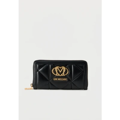 AmazonWomen's Love Wallet Moschino Quilted Faux Leather Zip around closure Gold logo on the front Inside with 8 card slots