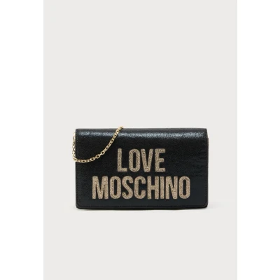 Women's Love Bag Moschino Shoulder strap made of soft faux leather with crack effect Black colour with lettering logo Flap closure with magnetic buttons Gold Chain Shoulder Strap