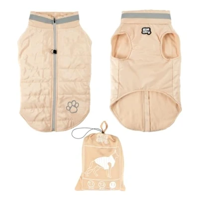️ Includes: Padded Jacket with Zip and Storage Pouch Size 3/65 cm Ecru COMFORT & WARM - The fleece lined pet down jacket provides thermal insulation to keep your pet warm in cold weather. LIGHTWEIGHT: Designed to be lightweight and comfortable for your pet, it does not restrict its movement while protecting it from the weather. Convenient to store, it comes with its storage pouch. ️ WEATHER RESISTANT - Provides extra protection from wind and downpours, ideal for cool to cold weather outings. Easy care: Machine washable for convenient cleaning and daily hygienic use, ensuring your pet's comfort and cleanliness.