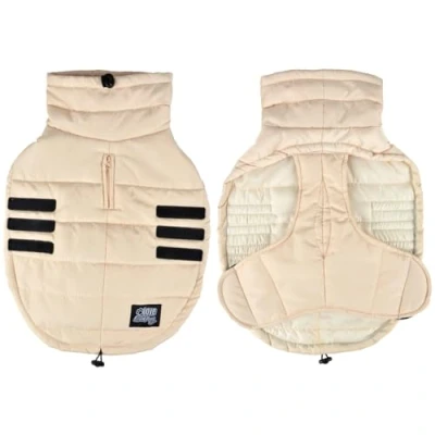 ️ Includes: Quilted Down Jacket with Wide Collar Velcro Fastening Size XL / 55 cm Beige COMFORT & WARM - The quilted pet down jacket provides thermal insulation to keep your pet warm in cold weather. LIGHTWEIGHT: Designed to be lightweight and comfortable for your pet, it does not restrict its movement while protecting it from the weather. ️ WEATHER RESISTANT: The quilting provides additional protection against wind and light showers, ideal for outings in cool weather. Easy care: Machine washable for convenient cleaning and daily hygienic use, ensuring your pet's comfort and cleanliness.