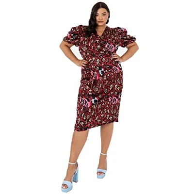 Lovedrobe Ladies Plus Size Dress for Womens V Neck Short Sleeve Puffed 18 Leopard,