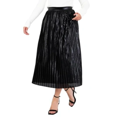 Lovedrobe Women's Midi Skirt Ladies Pleated Elasticated Waist Metallic Shiny Lined Smart Casual Office Wear Party, Black, 16