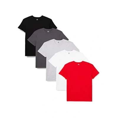 Lower East Men's T Shirt (Pack of 5), Black/Anthracite/Red/Light Grey Heather/White, M