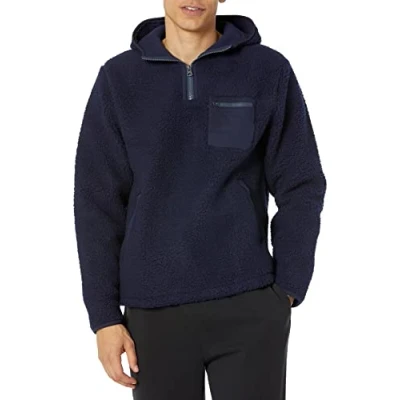 Lucky Brand Men's Solid Sherpa Utility Half Zip Hoodie, Black Iris, X Large