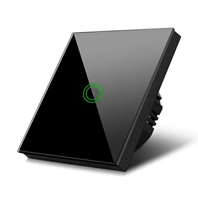 ▶ Innovative light switch with touch-sensitive touch control ▶ Perfect solution for hallways and passageways ▶ Backlighting ensures that the switch is easy to find, even in the dark ▶ Color change of the indicator light when turned on or off: Green when switched off / Red when switched on ▶ Suitable for all types of light sources up to max. 1000W ▶ Particularly resistant tempered glass against scratches, moisture and temperature ▶ Smooth and easy to clean crystal glass surface ▶ Includes LED or light adapter against unwanted effects such as afterglow or afterglow after switching off