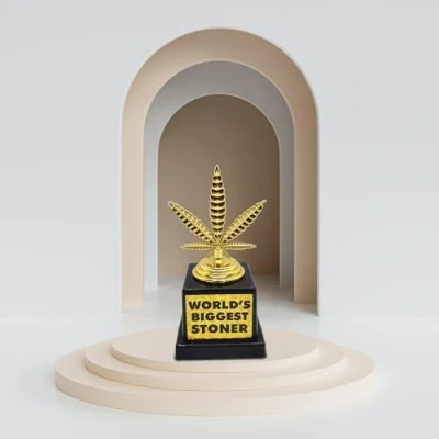Cup for the biggest s... in the world: shows with this funny hemp leaf cut that is the biggest hashist among the others FUN GIFT FOR EVERYONE WHO ENJOY TO SMOKE PLANTS - Perfect gift for any little smokers who build one to relax. Eyecatcher The trophy is about 12cm tall, it is made of high quality plastic and is adorned with the wording "World's Biggest Stoner". This makes it the ultimate eye-catcher for any room. Cleaning: In order to enjoy the World's Biggest Stone for a long time, we recommend cleaning the trophy only by hand and with a damp cloth., Manufacturer: Mad Monkey