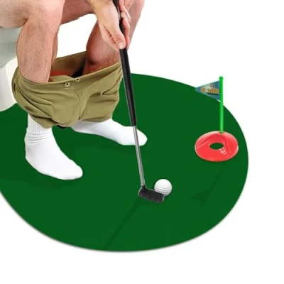 Toilet golf game set: probably the most original gift for any golf fan. The toilet golf set includes: green putting mat, golf hole, two golf balls, a golf club and the warning for the door: "Do not disturb". Mini golf at home: with this set you can improve your golf skills while sitting in the quiet place. Simply place the putting mat, place the golf ball and hole Fun item for all: this toilet golf set brings you and your guests a lot of joy. It's a fun change from your phone and a great way to kill your boredom. Joke item for real golf fans: this set is also a great gift for all golf fans who like to stay at home. Whether you buy it for yourself or as a fun gift for someone else, you will probably land well with this mini golf set, Manufacturer: Mad Monkey