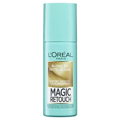 Root concealing spray for concealing hairlines, for natural colour and a professional transition without visiting a hairdresser Result: stepless and natural colour transitions, thanks to multi-faceted pigments, intense colour until the next hair wash Application: shake can well and spray on the hairline, can be used on all hair, salon colours and colouring brands Laminating spray with gentle formula without ammonia, suitable for daily use, sweat and styling resistant Box contents: L'Oréal Paris Magic Retouch Root Concealer Spray for Continuous and Natural Transitions, Blonde to Medium Blonde, 75 ml