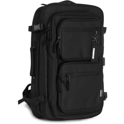 Sturdy backpack for professional DJs, music producers, photographers, filmmakers and content creators Constructed from 180 recycled plastic bottles (Global Recycling Standard certification) Heavy duty and 100% waterproof RPET 900D polyester and YKK AquaGuard zippers Expandable equipment storage compartment with EVA sidewalls and bottom padding. Includes removable dividers to customize individual sections, and fits laptops up to 17"
