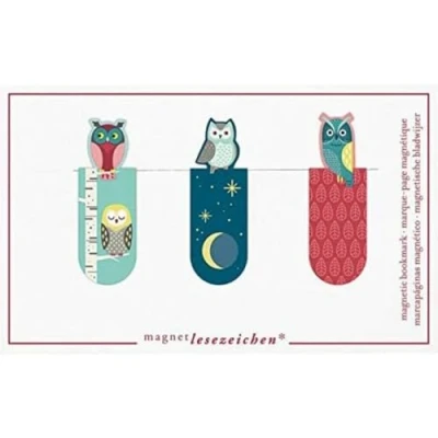 3 colourful magnetic bookmarks in the set: the charmingly illustrated bookmarks mark the current reading progress in a stylish way In addition, the bookmarks with the cute owls look out of the book, magazine or notebook and are an absolute piece of jewellery The bookmarks are also perfect for marking documents in the home office or school To mark, simply clip a few pages between the front and back of the bookmark. Magnetic bookmark keeps pages together Bookmark measures 5.5cm x 2.1cm