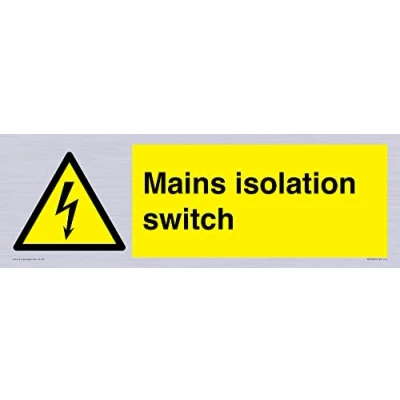 W012 : Electricity This sign is made from vinyl silver sticker 41 landscape Sign Text: Mains isolation switch