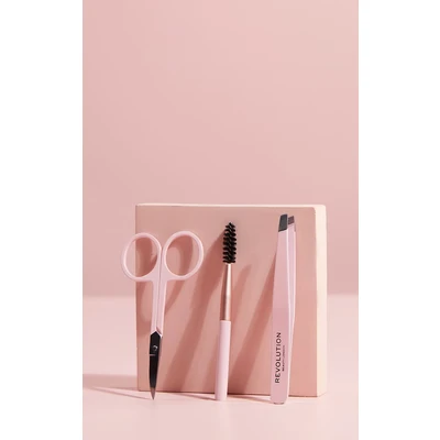 Revoholics essentials to create the ultimate beauty regime! Get your brows into shape with the Revolution Brow Shaping Set. Vegan & Cruelty Free This ultimate brow shaping 3-piece set includes: Scissors Use to trim and groom longer brow hairs to neaten up brows. Tweezers A pair of slanted tweezers for precise unwanted hair removal for brows to look defined. Spoolie Brush brows into place with the spoolie to help find any unwanted hairs.