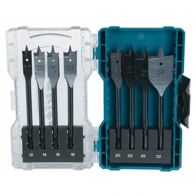 Contains 8 flat drill bits ranging from 12mm to 32mm in diameter Each bit features 1/4" hex shank design for secure tool fitting Standardized 150mm length across all pieces in the set Designed specifically for drilling in both hard and soft wood materials