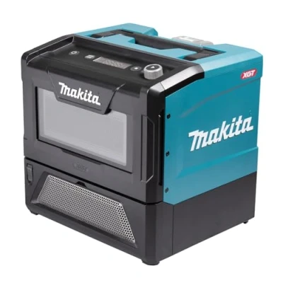 Powered by 40V Max XGT battery, one or two in parallel or PDC1200 portable battery power pack 8 litre cavity capacity (not included) 350 or 500 watts microwave power Cavity dimension 255mm x 241mm x 120mm Start button and heating time adjustment dial Optional heating time pre-set in 10 second increments within 20 minutes LED display panel to show microwave power and preset heating time, remaining heating time, battery fuel gauge for each battery and error code display Left hinged side opening door with tempered door glass to prevent easy breakage USB output port Easy to clean and maintain